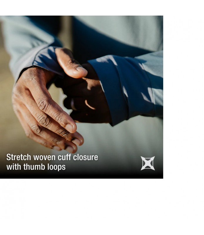 Soft touch and high tenacity fabric for comfort and quiet movement making it the optimal layering piece